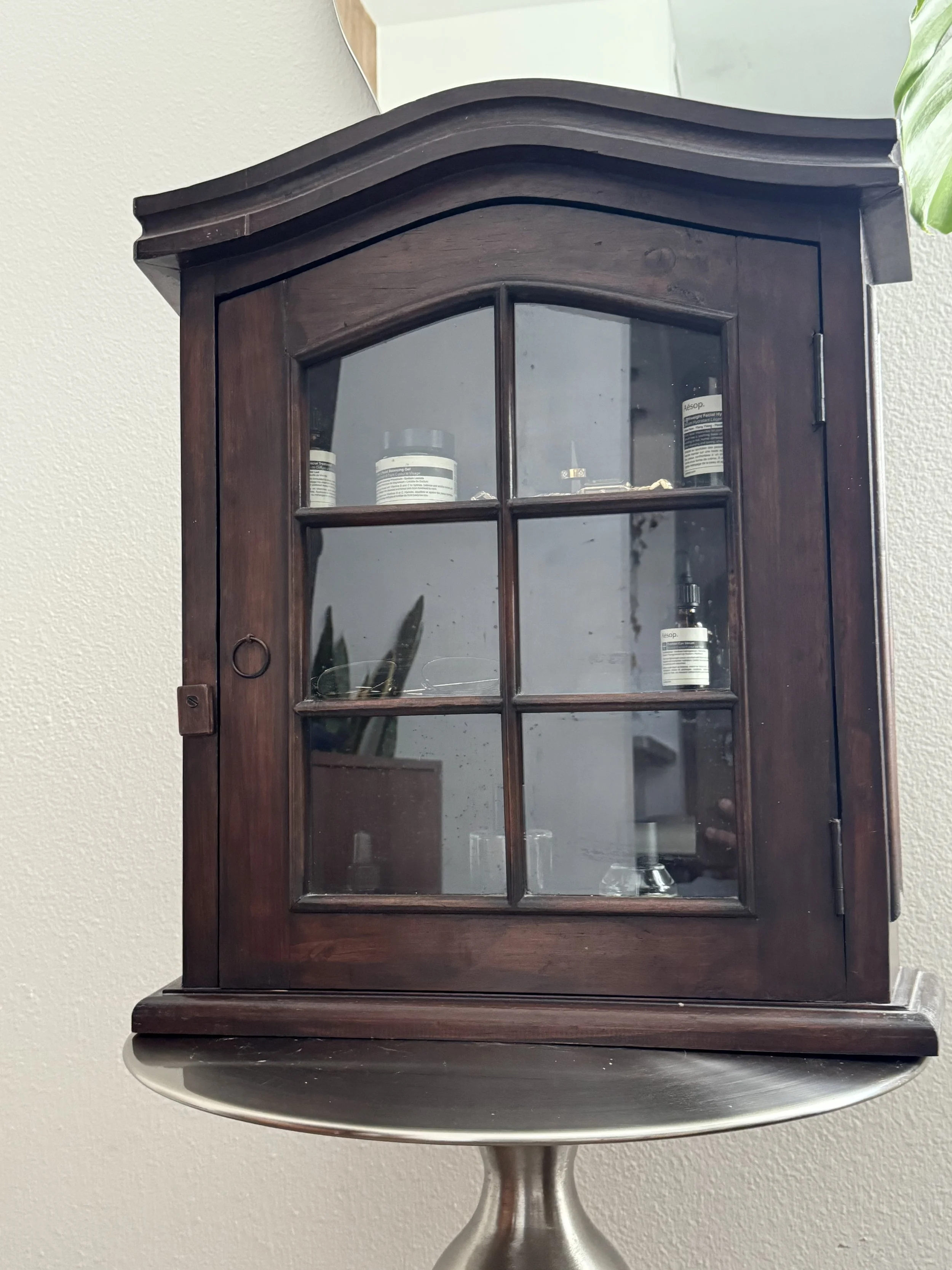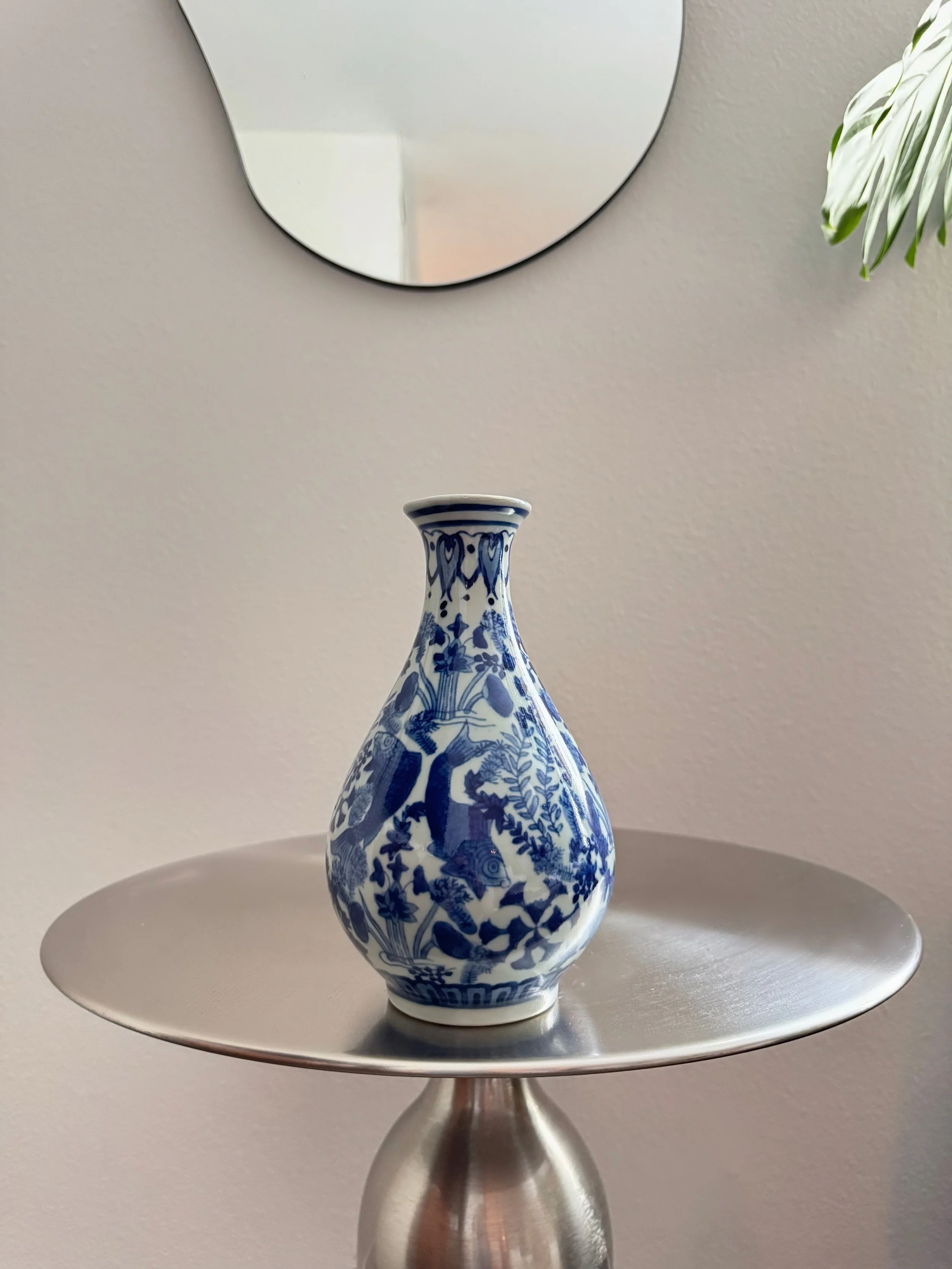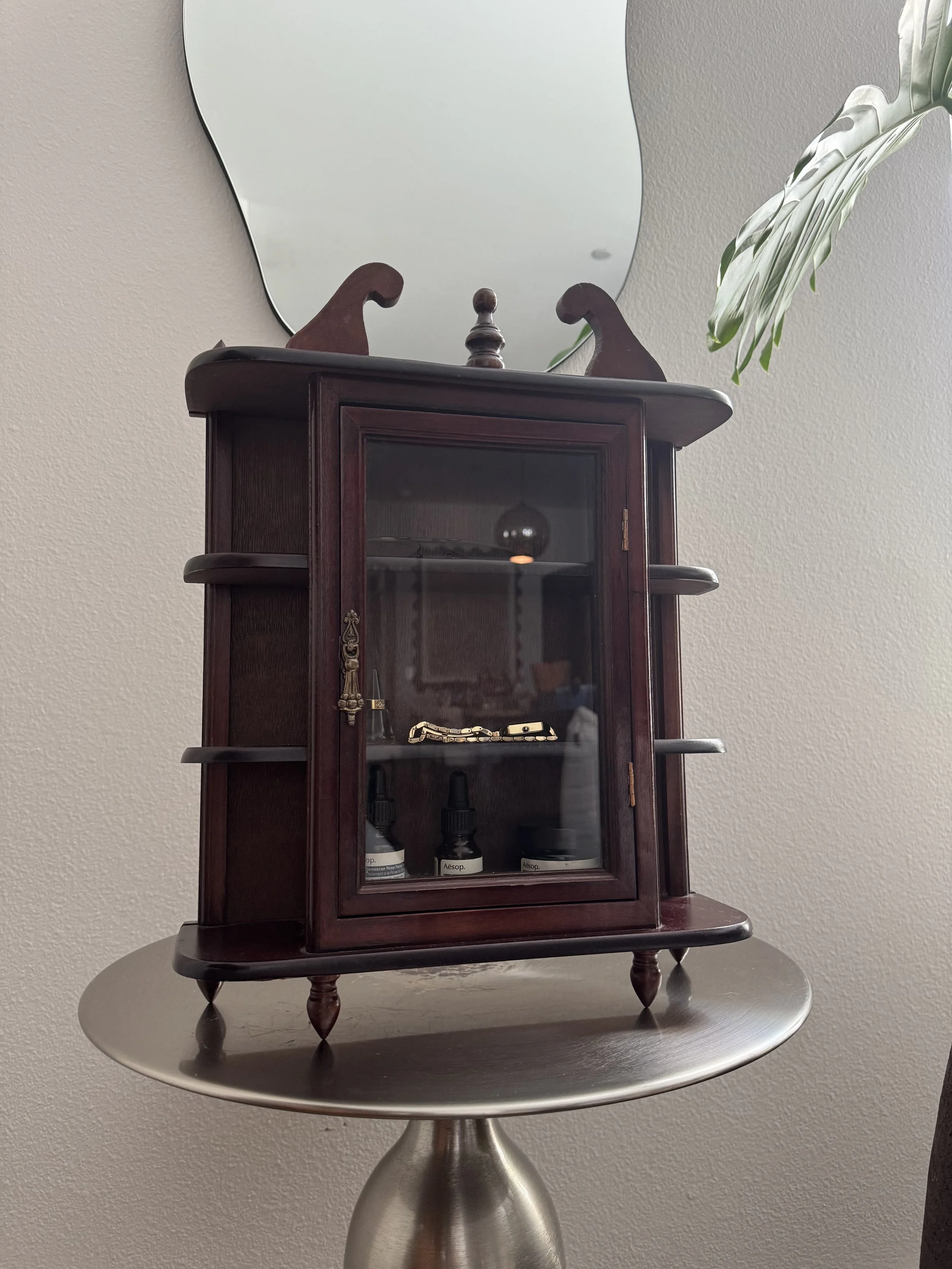 Shannon Crystal candlestick $50.00 Vintage crystal candle holders $35.00 Vintage Porcelain Blue and white Koi vase $20.00 Vintage Ceramic plate $30.00 Hull pottery Brown Drip Hen $50.00 Large Vintage Curio Cabinet $165.00 Vintage Curio Cabinet $80.00